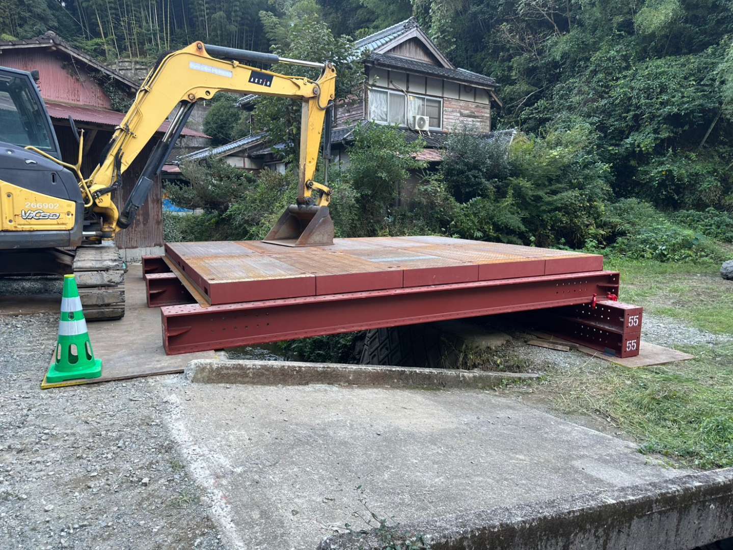【八女市立花町】現場条件に合わせた仮設架台設置で、安全な施工環境を確保